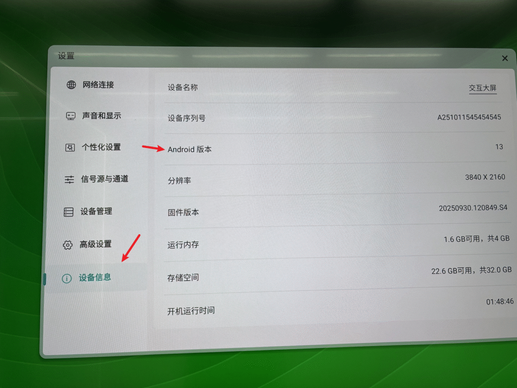 Click Device Information — locate the Android Version option — tap Android Version 6 times consecutively to open the Factory Menu.